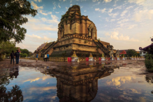 วัดเจดีย์หลวงวรวิหาร ด้วยอายุของพระธาตุที่คาดว่าไม่ต่ำกว่า 600 ปี ที่ประดิษฐานอยู่ภายในวัดเจดีย์หลวงวรวิหารเชียงใหม่แห่งนี้ เป็นวัดที่ตั้งอยู่กลางเมืองเชียงใหม่ การเดินทางไปได้สะดวกสบาย ต้องขอบอกกับผู้อ่านเลยว่าที่นี่เป็นสถานที่ที่ต้องห้ามพลาด เพราะด้วยสถาปัตยกรรมโบราณของพระธาตุองค์นี้ที่ยังคงความขลังและความศักดิ์สิทธิ์ให้นักท่องเที่ยวได้เข้าสักการะบูชา เป็นสมบัติแห่งชาติให้คนยุคหลังได้เห็นความเจริญรุ่งเรืองที่ครั้งหนึ่งเคยเกิดขึ้นที่นี่ที่เชียงใหม่แห่งนี้ อีกทั้งยังเป็นสัญลักษณ์แทนความกตัญญูของพญาแสนเมืองมาที่มีต่อพระราชบิดาโดยได้ทรงสร้างพระธาตุองค์นี้ขึ้นเพื่อถวายเป็นการอุทิศส่วนบุญส่วนกุศลให้แด่พระพญากือนา พระธาตุองค์นี้มีความสูงกว่า 80 เมตร ความกว้างของฐาน 60 เมตร ได้รับการปฏิสังขรณ์ ทำนุบำรุงพระธาตุให้อยู่ในสภาพที่สมบูรณ์เพื่อบอกเล่าเรื่องราวไปยังคนยุคหลังสืบต่อกันไป
