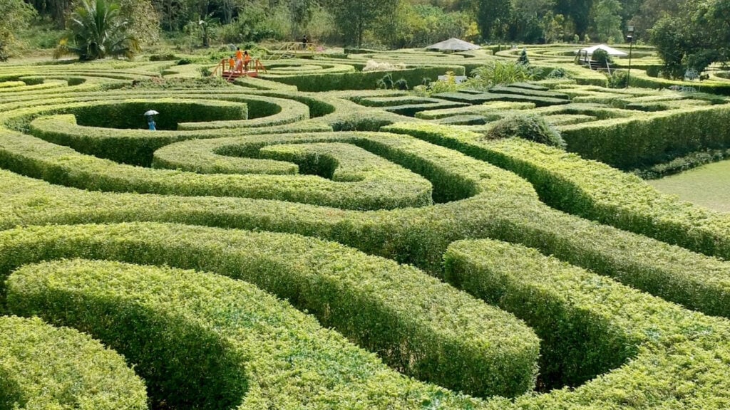 สายเที่ยวชอบแอดเวนเจอร์ แบบใช้สมองควบคู่ไปด้วย มาที่นี่ได้เลยครับ “พิชญ์เขาวงกต” สวนเขาวงกต ทำจากต้นไม้สูงบนพื้นที่กว่า 5 ไร่ ถูกออกแบบวางสลับซับซ้อนจนต้องใช้สมองอย่างหนัก เพื่อหาทางออกให้ได้ครับ ระหว่างหาทางออกก็มีจุดให้ถ่ายรูป บนสะพานชมวิว ถึง 4 จุดเลย ซึ่งบนสะพานก็เป็นการมองวิวกว้างๆ ให้ได้ชมวิวระหว่างที่กำลังตื่นเต้นกับการหาทางออก เป็นกิจกรรมสนุกๆ เหมาะสำหรับมากับเพื่อน และครอบครัวมากครับ