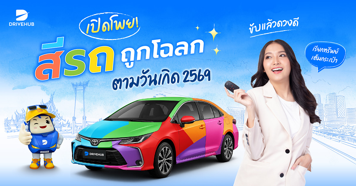 เรื่องการมูกับคนไทย เป็นของคู่กันครับ ไม่ว่าจะเรื่องอะไร ก็ขอมูให้สบายใจกันไว้ก่อน โดยเฉพาะเรื่องของสีมงคลตามวันเกิด ทั้งเสื้อผ้า กระเป๋าสตางค์ รวมไปถึงรถยนต์คู่ใจ นอกจากฤกษ์ดีแล้ว ก็ต้องขอสีมงคล เสริมดวงกันไว้หน่อย รถส่งคน คนส่งรถ เสริมบารมี รับความปังตลอดการขับขี่ Drivehub ขอเปิดโพย สีรถถูกโฉลกตามวันเกิด อัปเดตล่าสุด 2569 ออกรถใหม่ครั้งนี้ มีแต่รับความเฮงแน่นอนครับ