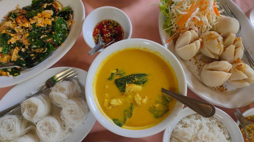 มาเยือนถิ่นใต้ อีกหนึ่งเมนูที่ไม่ควรพลาดก็คือขนมจีนครับ ซึ่งร้านขนมจีนสะพานหิน จัดได้ว่าเป็นร้านอร่อยเด็ดของภูเก็ตในเรื่องของขนมจีนครับ ด้วยความเข้มข้นของเครื่องแกงและวัตถุดิบที่นำมาปรุง ทำให้เมนูน้ำยาของที่นี่หรอยจังฮู้ และจะขาดไก่ทอด เครื่องเคียงขนมจีนแบบชาวใต้ไปไม่ได้เลยครับ ถ้าได้ลองกินด้วยกันรับรองว่าฟินมากเว่อร์